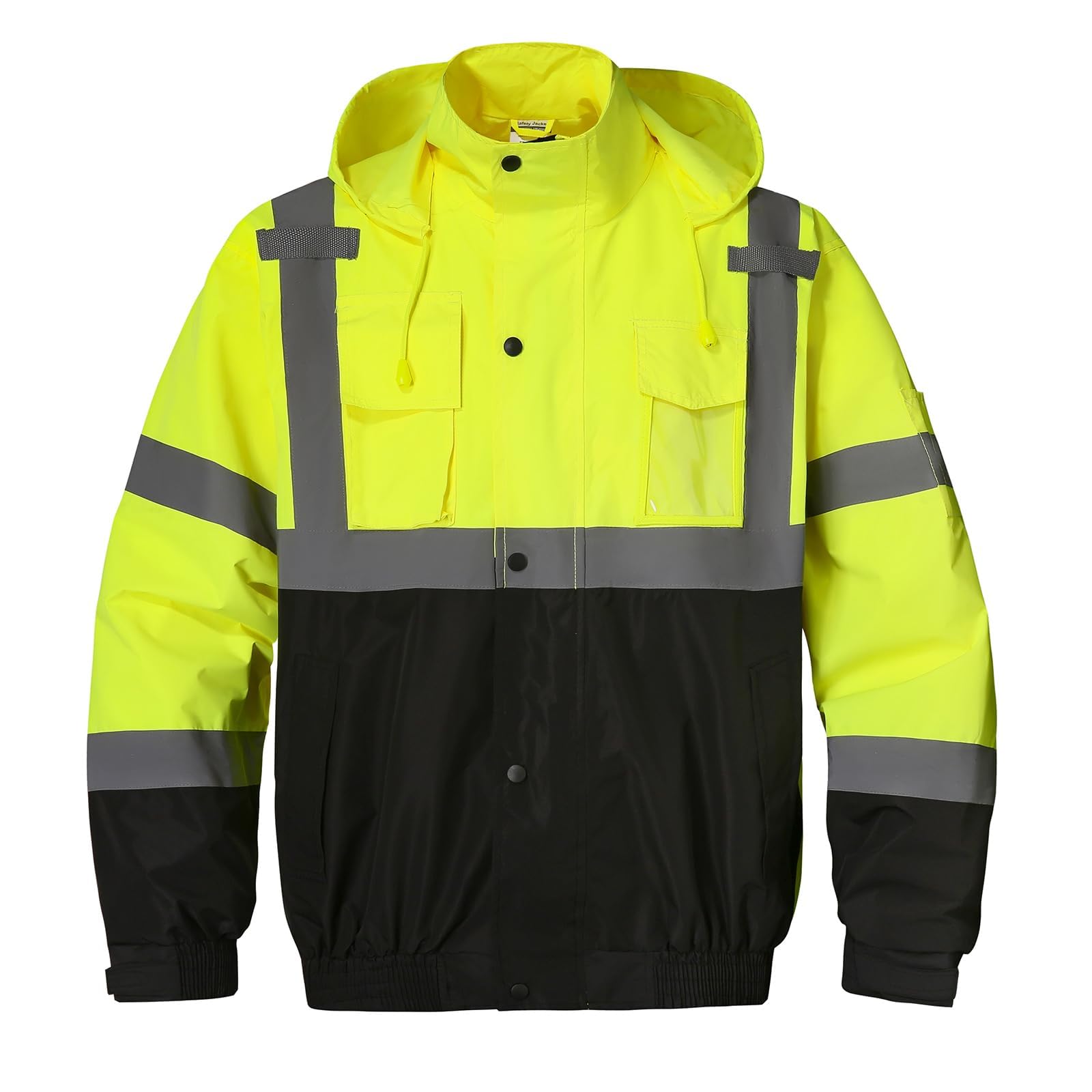 - The men rain suit is clearly visible in the sunlight, and the reflective tape makes the rain jacket visible at night. 2” wide orange piping high-reflective silver tapes cover the shoulders, waist, back and arms. This reflective men’s rain suit offers 360°protection while you are working under daylight or low light conditions