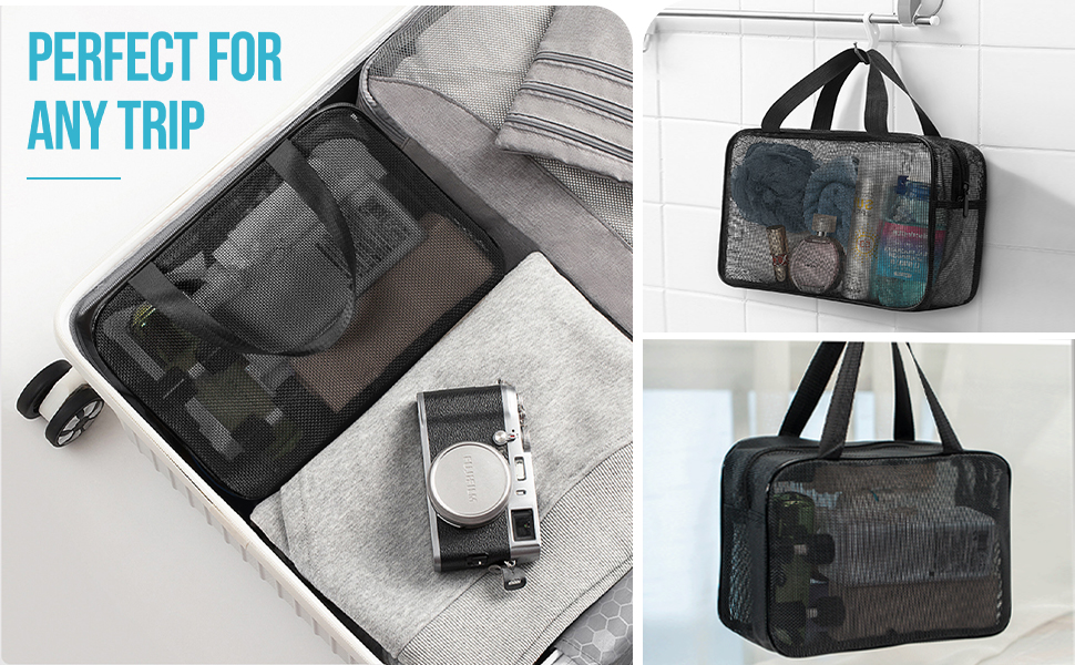 • Versatility: This mesh tote bag can not only be as a shower bag for gym, swimming, SPA, bathroom, but also as the toiletry, makeup, cosmetic organizer bag for travel, trip. You can see everything at a glance by the see-through mesh design.