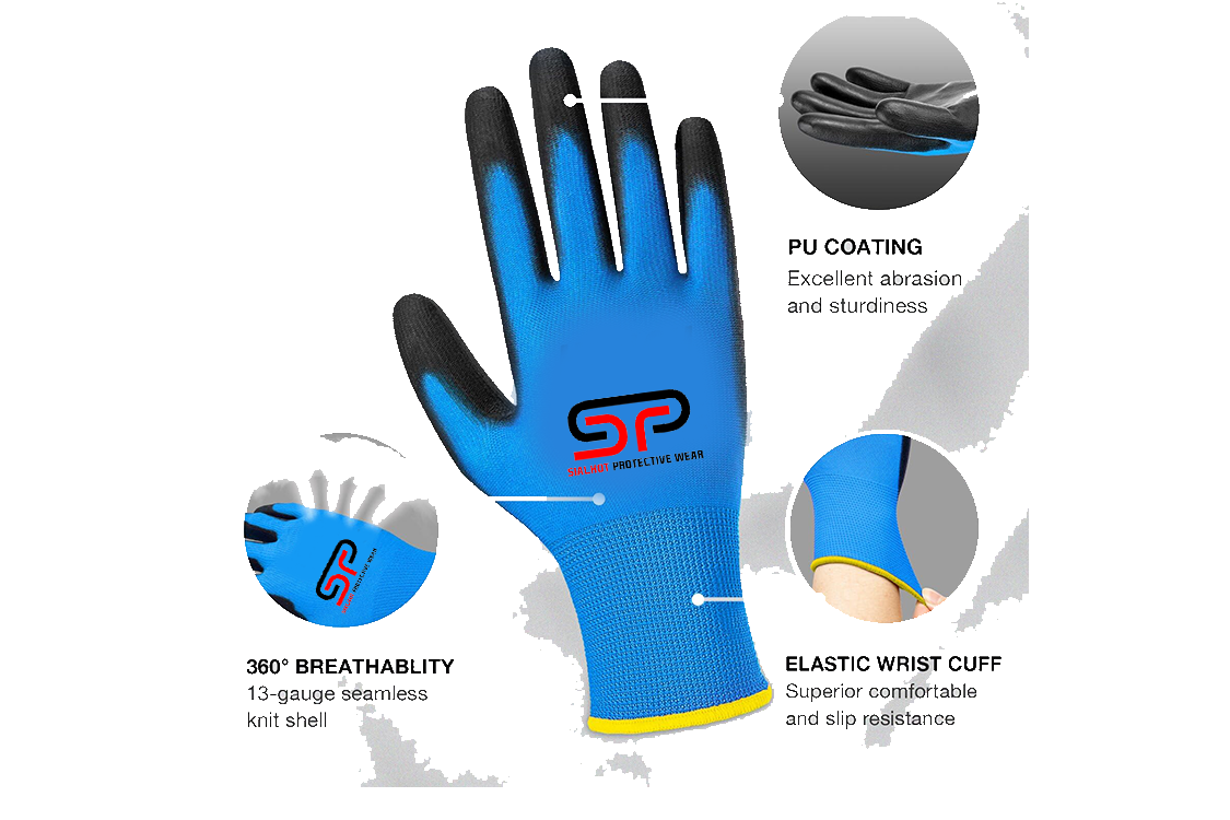- Enhanced Abrasion Resistance: PU coating on palms and fingertips ensures abrasion resistance and delivers a non-slip grip even in wet or dusty conditions – perfect for handling tools or small parts.